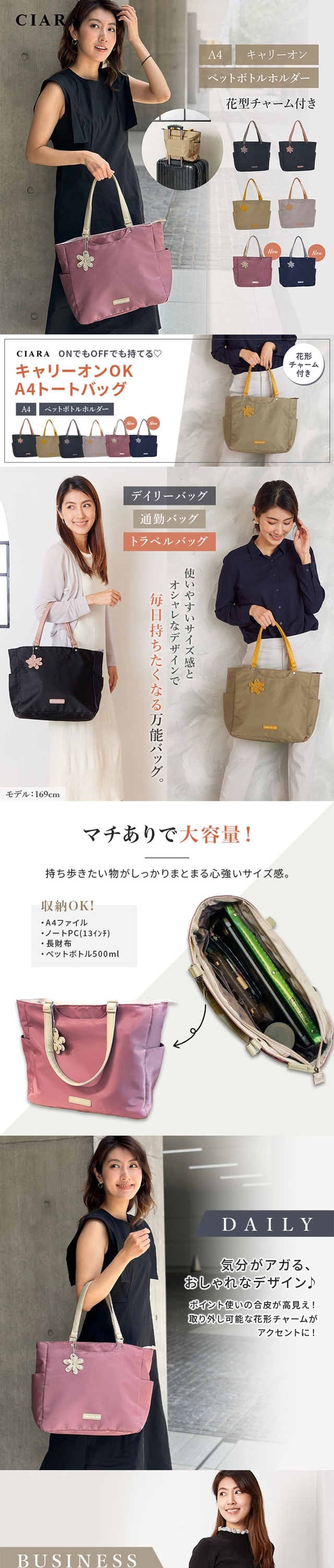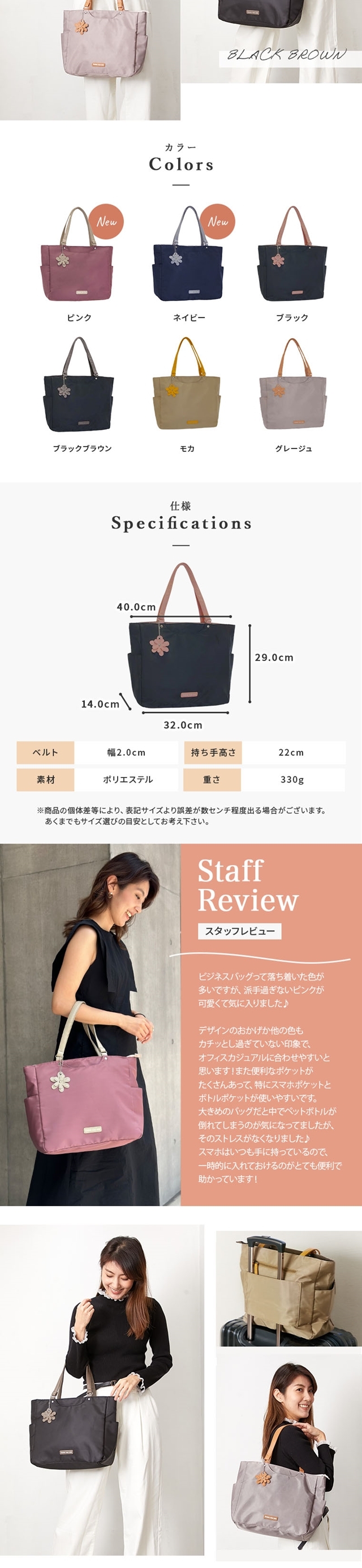 送料無料 オンオフ問わず使えるきれいめビジネスバッグ 花型チャーム付 女性 ファスナー付き