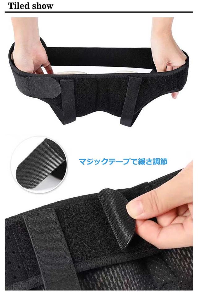 | サイズについての説明 | S(ウエスト60-66cm) M(ウエスト76-90cm) L(ウエスト93-103cm) XL(ウエスト106-120cm) 【装着は簡単4ステップ!】 1、腰椎固定ベルトを開き、パッドを取り付けます。 2、ズボンを履くようにベルトを着用します。 3、パッドが患部に当たるようにし、お好みの強さで圧迫しながら腰のベルトで固定します。 4、上下の位置を調整しながら、太もも位置のベルトを装着します。 |