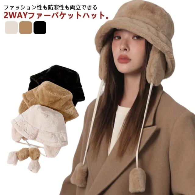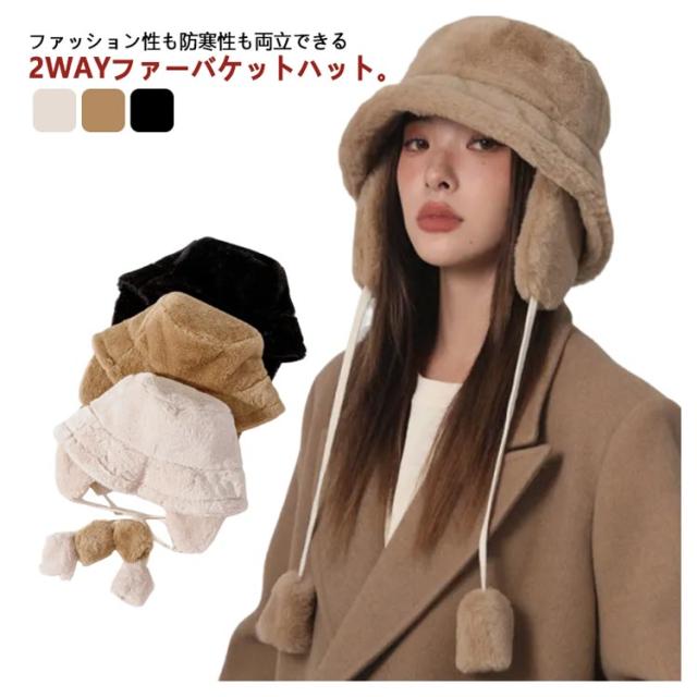 ファーハット 耳あて付き 耳付き 耳あて取り外し可能 帽子 防風 レディース 厚手 送料無料 バケットハット ファーハット 耳あて取り外し可能 ボアハット 防寒 保温 フェイクラビットファー 暖かい もこもこ ふわふわ アウトドア 冬物