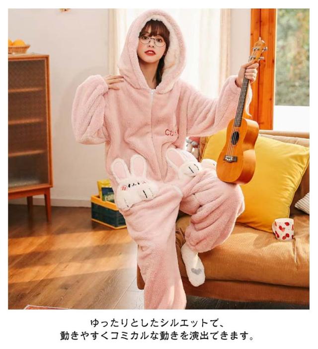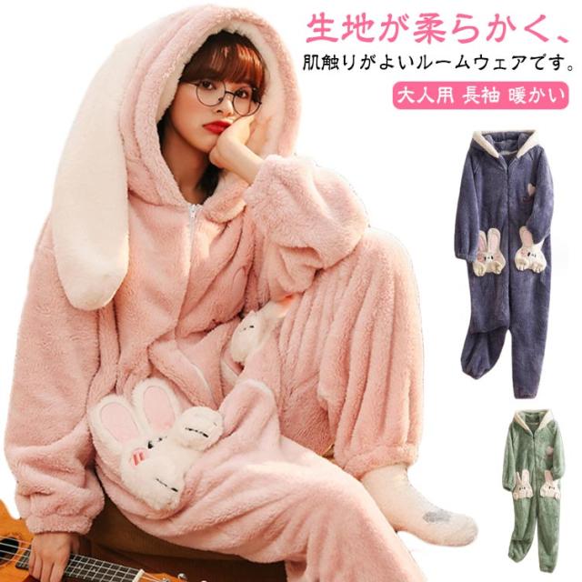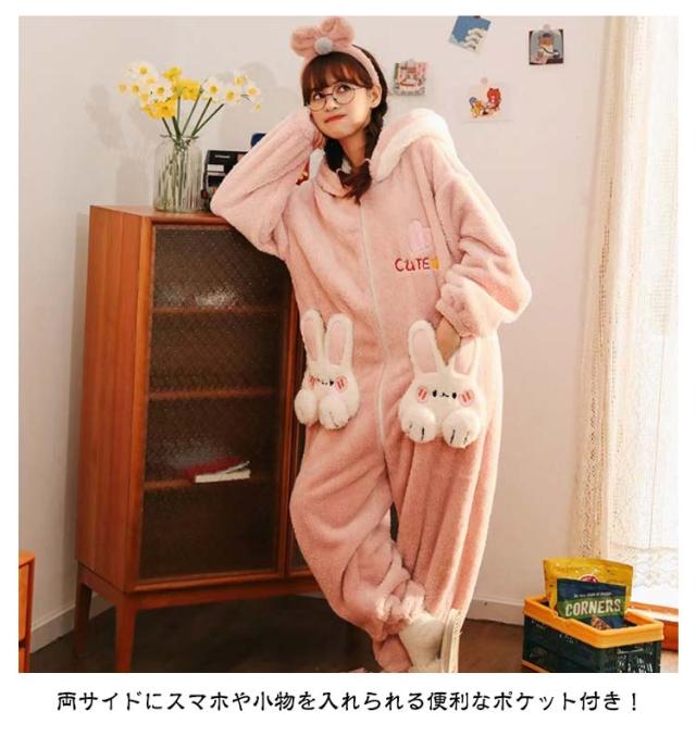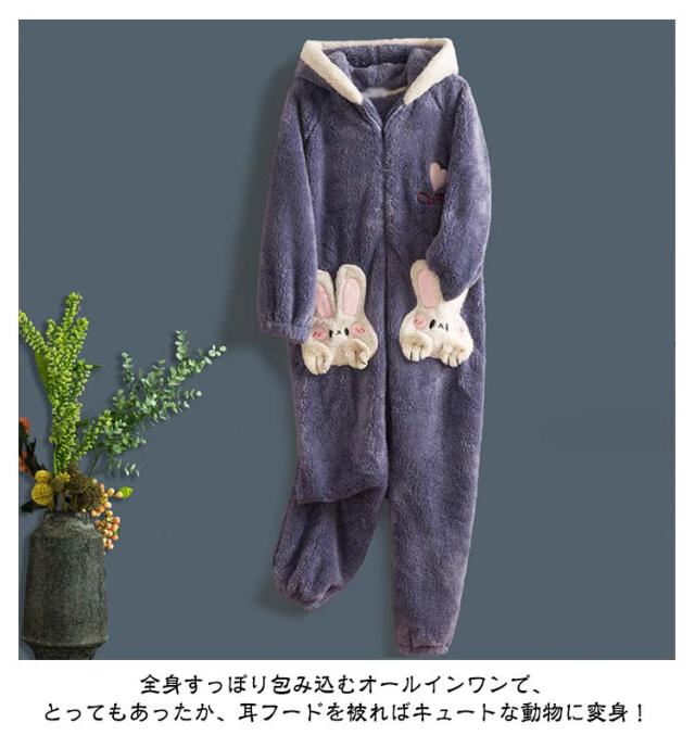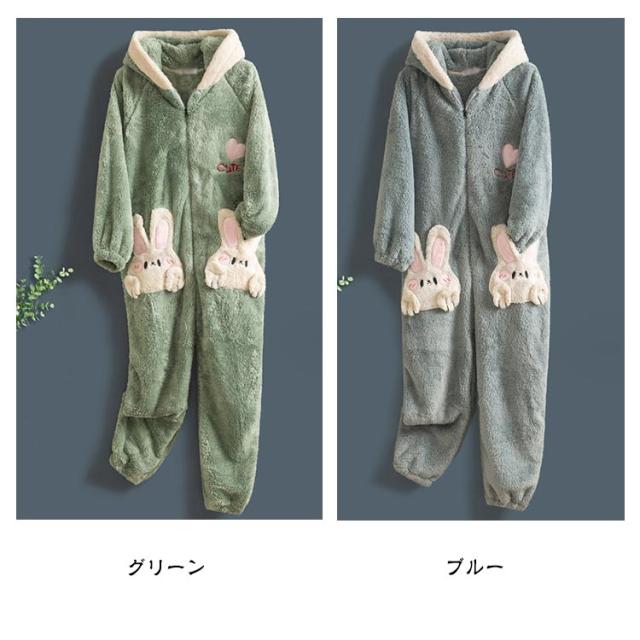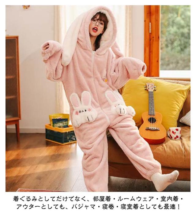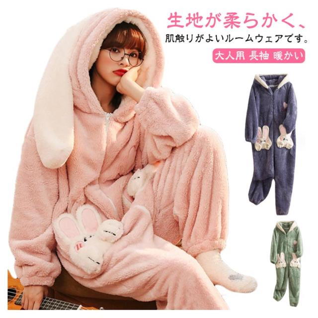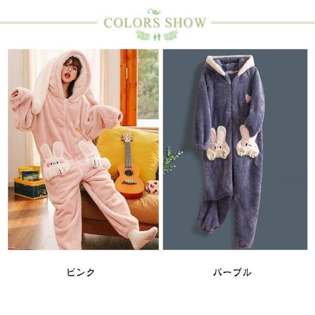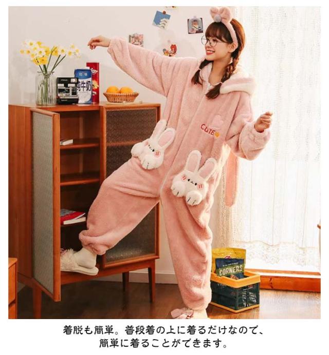きぐるみパジャマ ルームウェア パジャマ もこもこ 長袖 可愛いパジャマ 冬 ルームウェア 可愛い 大人用 部屋着 暖かい ウサギ レディース きぐるみパジャマ 冬ワンピース寝巻き オーバーオール