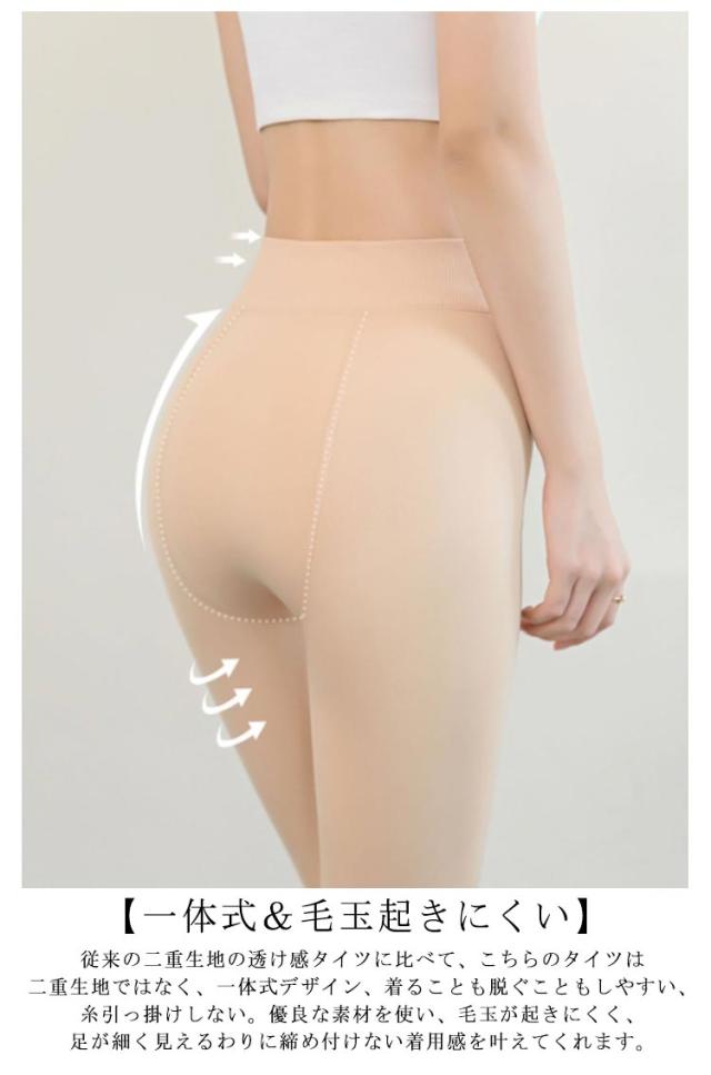 | SNSで話題!ストッキング風極暖フェイクタイツ 裏起毛でふわふわぽかぽか。 【素材】ウエスト、ヒップ、太もも、スネをしっかり包みます。美脚、美尻効果抜群です。裏には足まで起毛の仕様で、ふんわりあたたかく、熱を逃しません。中の縫い部分は滑らかですっと穿けます。 【透け感の秘密】 秘密は特殊な加工の生地にあります。伸縮すると、内側に見えるベージュ色が変化。伸びるほどブラックが薄く、ベージュ色が濃くなって、まるでストッキングを履いている肌の色のよう。上品な透け感がオシャレさと美しいシルエットの脚ラインを演出します。 【一体式&毛玉起きにくい】 従来の二重生地の透け感タイツに比べて、こちらのタイツは二重生地ではなく、一体式デザイン、着ることも脱ぐこともしやすい、糸引っ掛けしない。優良な素材を使い、毛玉が起きにくく、足が細く見えるわりに締め付けない着用感を叶えてくれます。 【痩せ見え効果】 程よいのフィット感で、太ももから足元まで、気になるお肉をすっぽりと包み込み、痩せ見え効果抜群。 | |