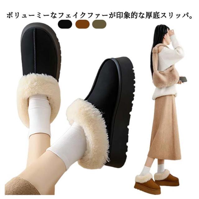 スリッポン 大きいサイズ 厚底 フェイクファームートン