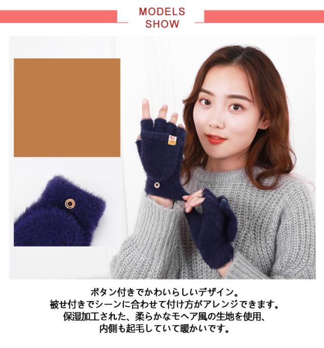 | ふわふわでやさしい触り心地のモヘア風!シーンに応じて2WAYでご使用いただける手袋です。 5本指タイプはスマートフォン対応で手袋を外さずにスマホが触れます。 作業をする時は指先を出して使用、寒い時は被せを付けて指先まで暖かく、ご使用いただけます。 ボタン付きでかわいらしいデザイン。被せ付きでシーンに合わせて付け方がアレンジできます。保湿加工された、柔らかなモヘア風の生地を使用、内側も起毛していて暖かいです。 | |