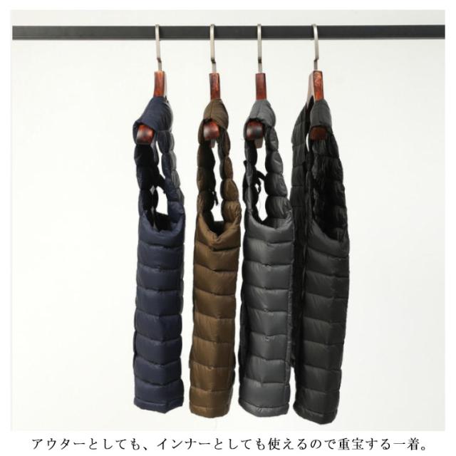 | 冬の人気アイテム、インナーダウンベスト。 柔らかな触り心地で、 まるで羽毛布団のような軽やかさと優しい暖かさ。 シンプルで着膨れを抑えたシルエット、アウター下にも使いやすい適度なフィット感があります。 コンパクトに収納ができ、持ち運び便利。 アウターとしても、インナーとしても使えるので重宝する一着。 | |