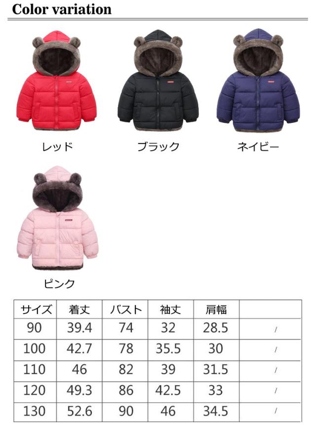 アウター フード付き 裏ボア コート 子供 キッズ ジャケット 冬 90cm 中綿 洗える フード付き クマ耳 暖かい 女の子 無地 ボア ジャケット 防寒 秋 冬 厚手 ボア 冬服 ジュニア コート 通学 アウター 子供服 ボーイズ スキー ガールズ 100cm 110cm 120cm