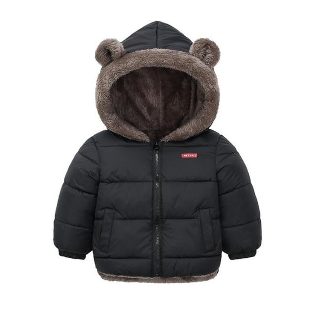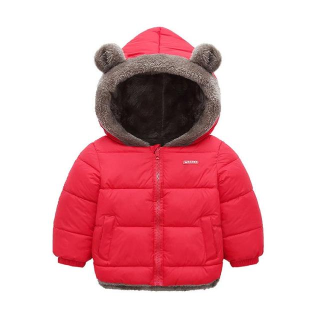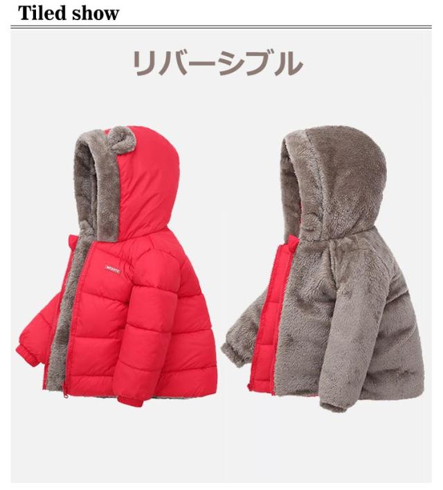 | 90cm 100cm 110cm 120cm 130cm 裏起毛 かわいい立体的なクマの耳のフード付きデザインの幼児用冬用スノーコート | |