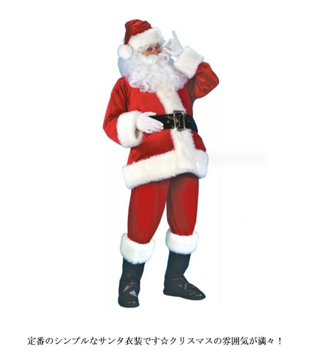 | 【S-3XL】【サンタクロース衣装】【豪華7点セット】 セット内容:トップス+ズボン+帽子+髭+ベルト+靴カバー+手袋 定番のシンプルなサンタ衣装です☆クリスマスの雰囲気が満々! あっという間にサンタクロースに変身できます。 クリスマスの仮装、文化祭、忘年会、イベント、パーティのコスプレなど様々なシーンでお使いいただけます。 | |