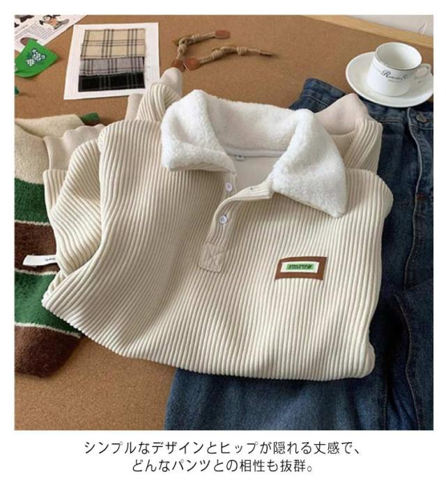 アウター コーデュロイ 裏起毛 ハーフボタン 無地 トップス スウェット 襟付き パーカー 長袖 ポロシャツ ボア襟 暖かい ゆったり レディース トレーナー 春 秋冬 通学 ユニセックス メンズ シンプル 学生 メンズ 通勤 韓国ファッション 大きいサイズ