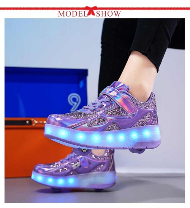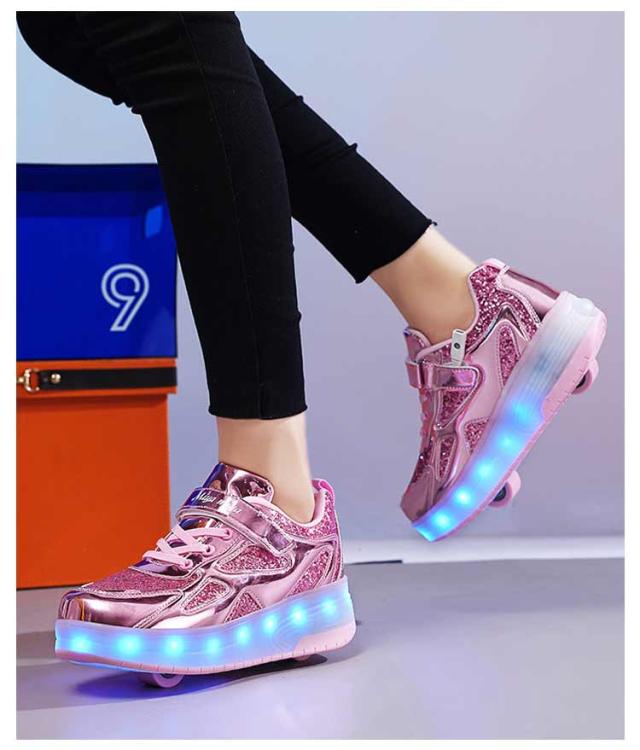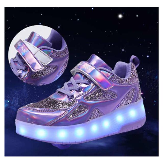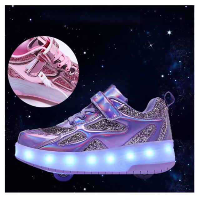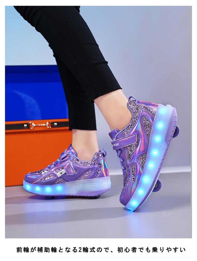 キッズ 大人 USB充電 ローラースニーカー キラキラ 二輪式 ローラースケート ローラーシューズ ローラースケート 子供用 ジュニア スニーカー ローラーシューズ ローラーシューズ キラキラ 光る靴 オシャレ 2way 運動靴
