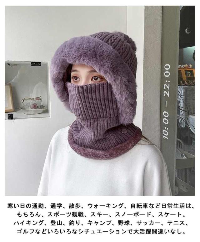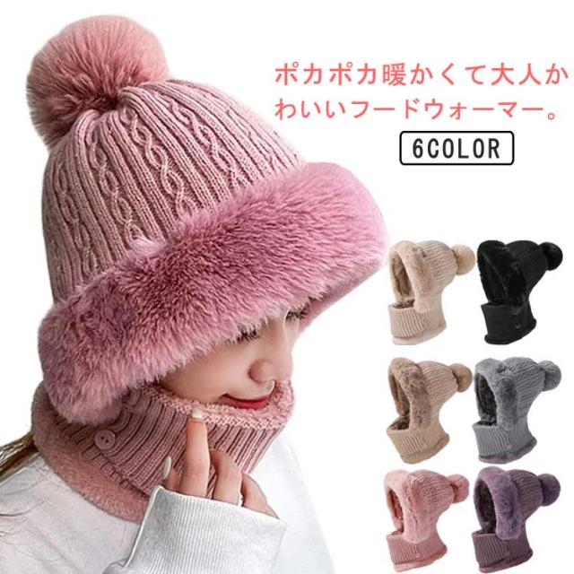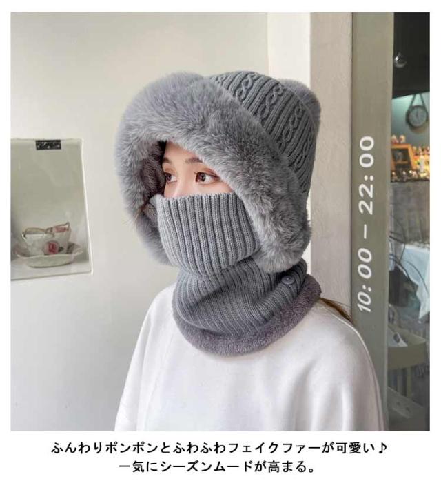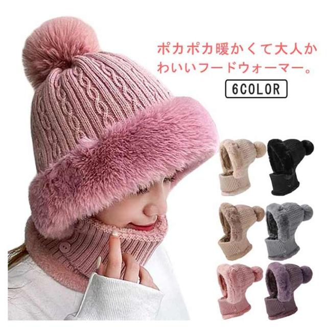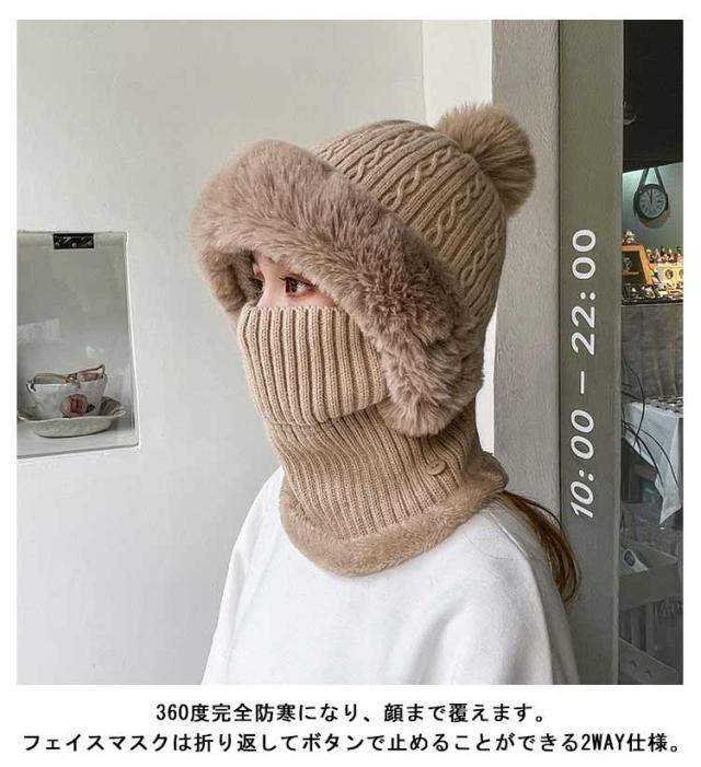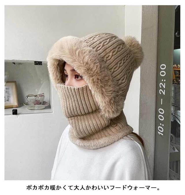 裏ボア ケーブル編み ニット帽 フードウォーマー 暖かい ネックウォーマー 可愛い フードウォーマー フェイスマスク レディース ふわふわ 耳まで暖か 毛布 フェイスガード ニット キャップ 帽子 フェイクファー