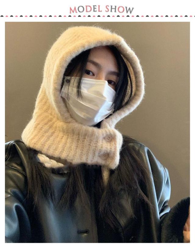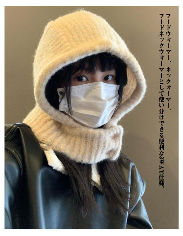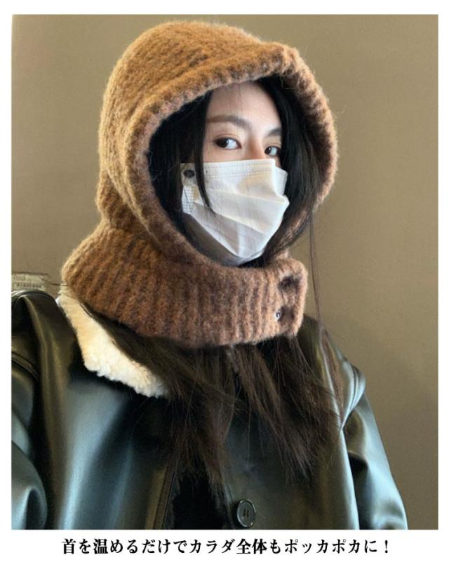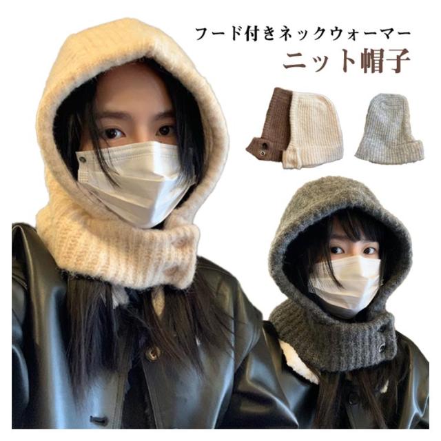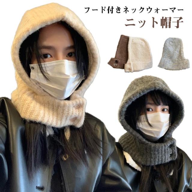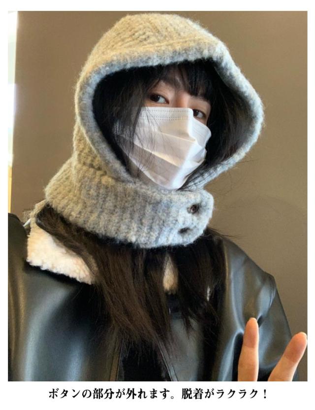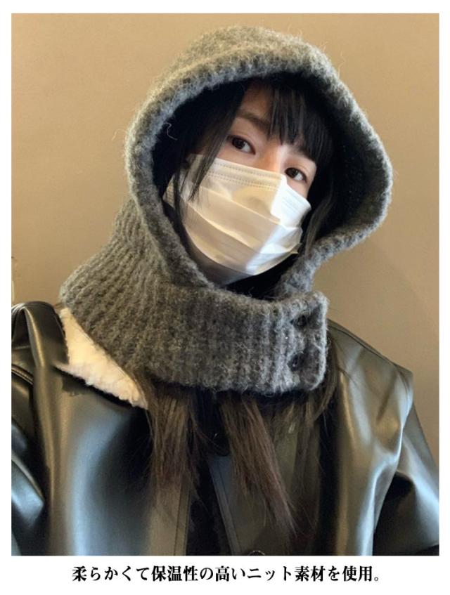 フード付きネックウォーマー ネックウォーマー キャップ 耳あて フードウォーマー ニット帽子 ボタン外れる ネックウォーマー帽子 スヌード 帽子 ニットキャップ 秋冬 フード付きネックウォーマー マフラー ニット ニット帽 防寒