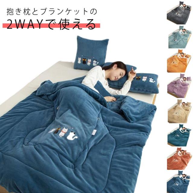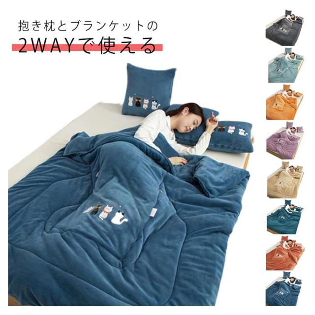 毛布 あったか 2way 抱き枕 多機能 ふわふわ 秋冬 蓄熱 マイクロファイバー 発熱 ブランケット 防寒 小さいな掛け布団 コンパクト ブランケット あたたか あったか 毛布 猫 ソファ コットンケット