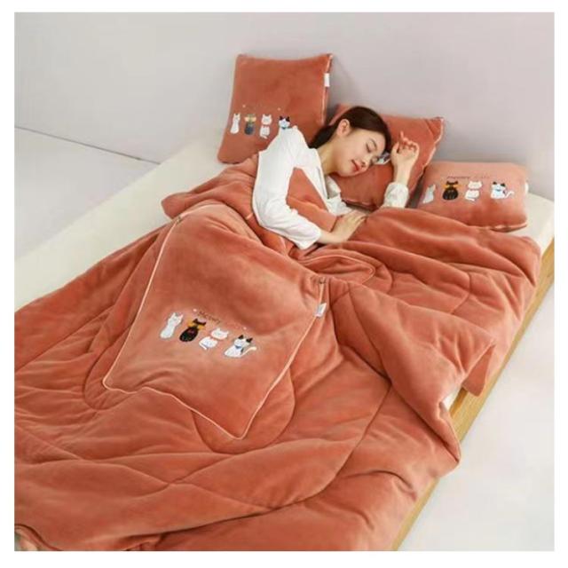 | 抱き枕とブランケットの2WAYで使える 暖かい冬にぴったりなミルクベルベット生地、断熱性があり、快適でソフトな肌触り。 新しくアップグレードされた厚みのある暗号化されたデザインにより、保温性が向上しました。 色落ちしにくく、毛玉になりにくく、静電気防止、シワになりにくく、安心してご使用いただけます。 収納時は枕として、広げると小さな掛け布団になります。 お昼寝ブランケット、ソファブランケット、車用ブランケットとしてさまざまなシーンに適しています。 | |