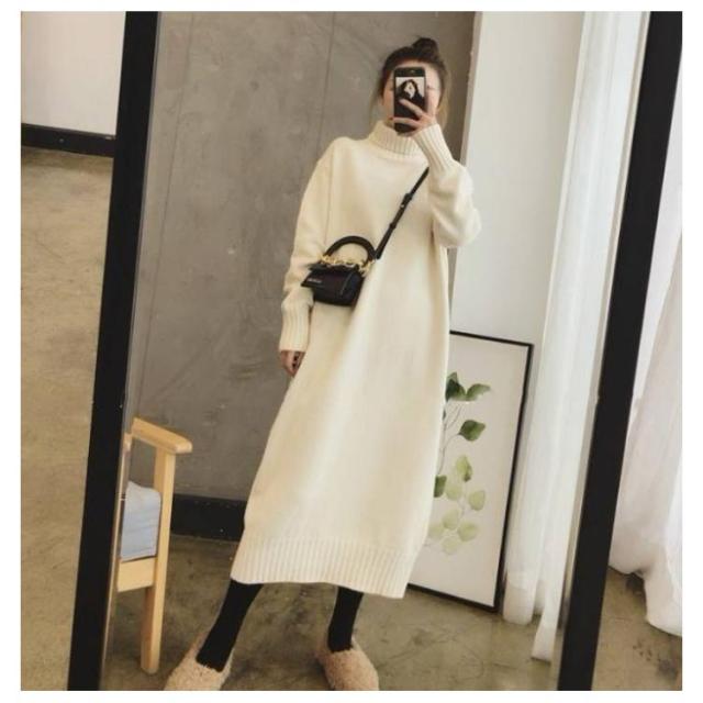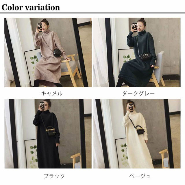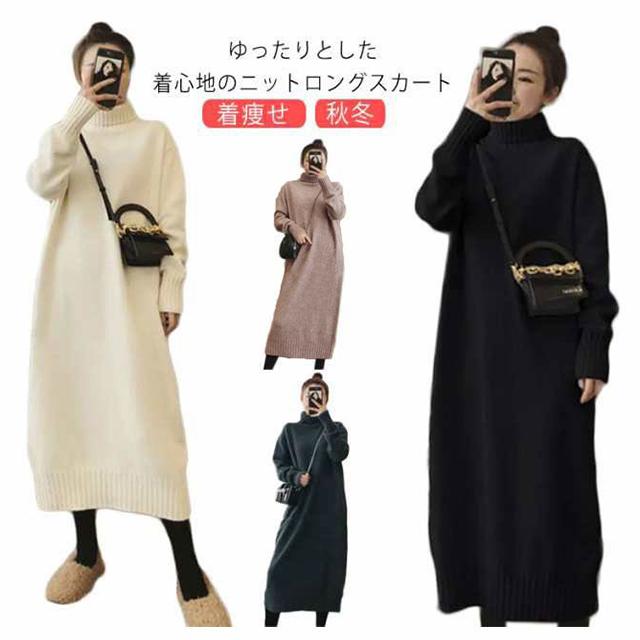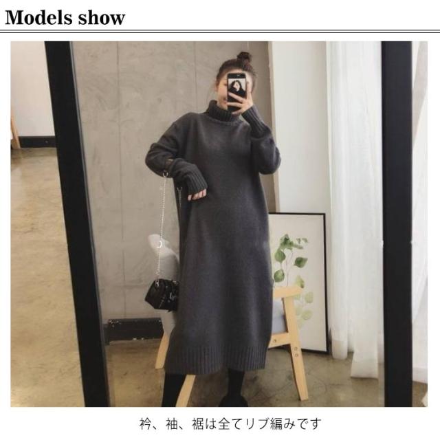 ニットワンピース レディース 秋 リブニット ロングワンピース ハイネック 無地 ワンピース ニット ニットワンピース 春 長袖 冬 膝丈ワンピース 長袖 カジュアル 大きいサイズ 伸縮 ワンピ 膝丈 春 大人 エレガント 着痩せ
