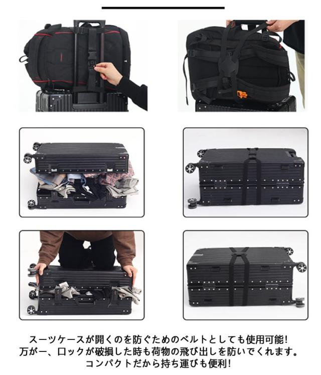 | スーツケース用 バッグをとめる 荷物固定ベルト 旅行 出張 簡単に装着でき、ベルトの長さも調整が可能です。 スーツケース本体のベルトとしても使用可能! スーツケースが開くのを防ぐためのベルトとしても使用可能!万がー、口ックが破損した時も荷物の飛び出しを防いでくれます。 コンパクトだから持ち運びも便利! | |