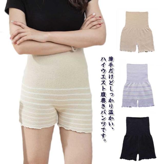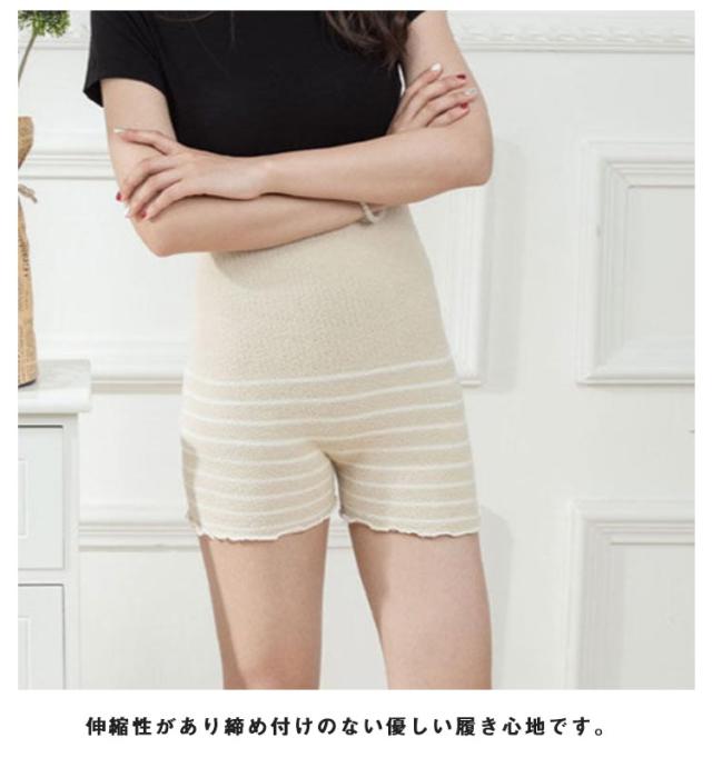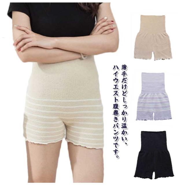腹巻きパンツ ボーダー もこもこ 毛糸 レディース もこもこ 下着 インナー 温活 冷えとり 長め丈 寒さ対策 あったか ハイウエスト 無地 ルームパンツ 部屋着