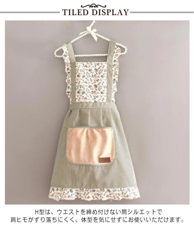 エプロン きれいめ 花柄 ワンピースエプロン 可愛い 前掛け おしゃれ ストライプ エプロン 胸当てエプロン H型 ドレスエプロンカフェ ユニフォーム 花屋 女性用