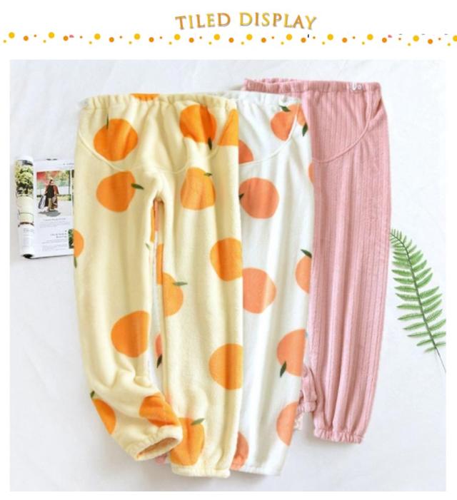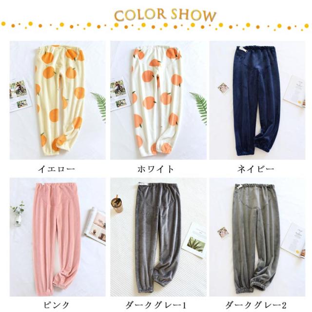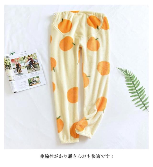 もこもこ オレンジ柄 長ズボン もこもこ マタニティ 可愛い ルームパンツ 裏起毛 おしゃれ ロング 暖かい あったか 無地 ふわふわ 秋 冬 春 マタニティウェア
