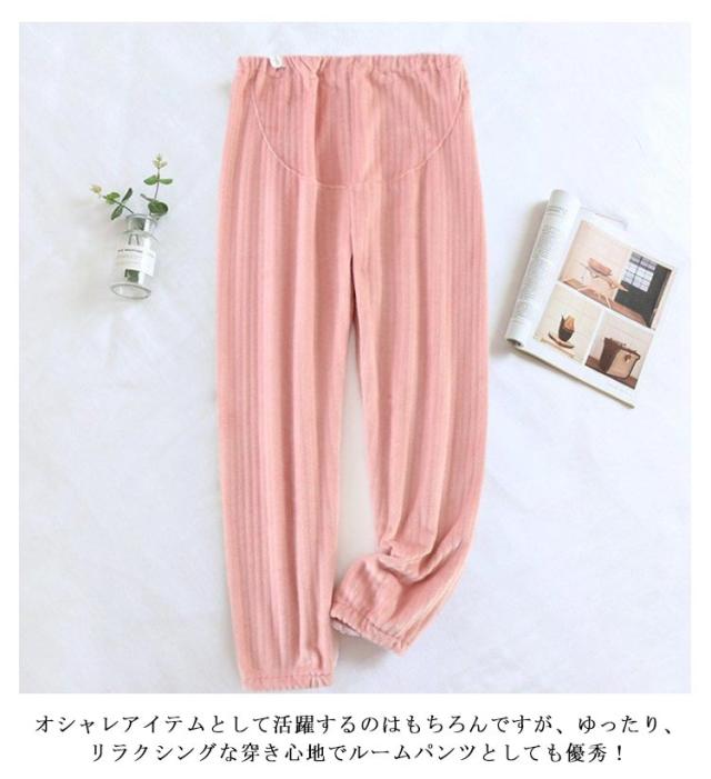 | フワフワした肌触りが気持ちの良いルームウェア用マタニティパンツです。 伸縮性があり履き心地も快適です! アジャスター付きで、日々大きくなるお腹にも長時間の着用で窮屈感がなく快適、産前産後共に履けます。 オシャレアイテムとして活躍するのはもちろんですが、ゆったり、リラクシングな穿き心地でルームパンツとしても優秀! | |