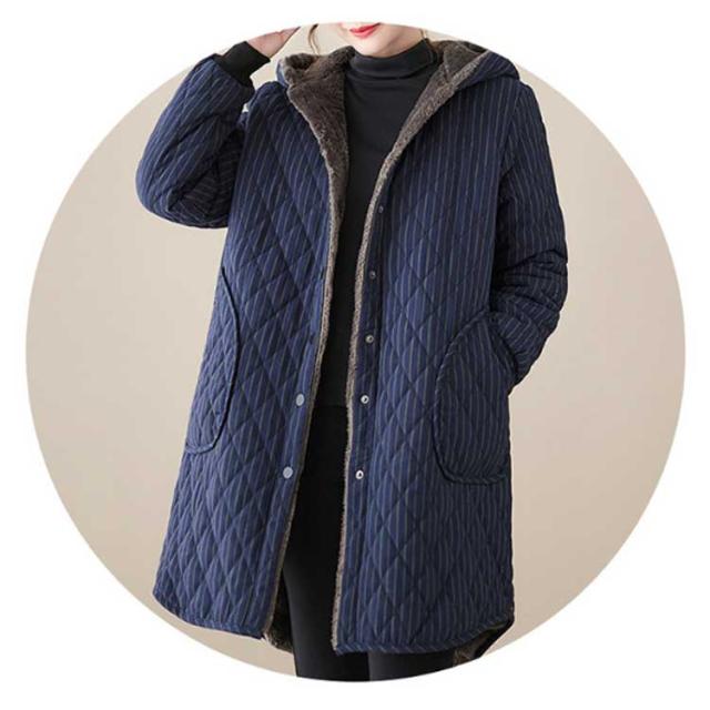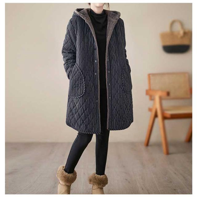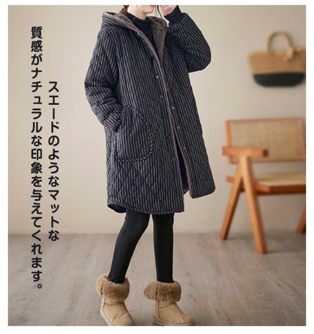 防寒コート ロング丈 40代 フード付きコート 50代 キルティングコート 白 キルティングジャケット 30代 中綿コート ピーチタッチ 黒 キルティングジャケット ストライプ ロングコート レディース 中綿ジャンパー ゆったり 厚手 カジュアル シンプル レトロ スタイル 秋冬