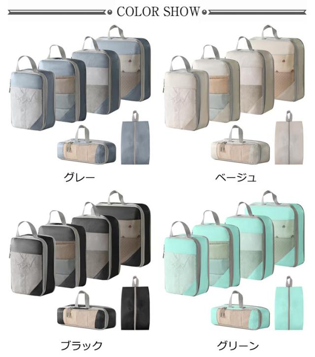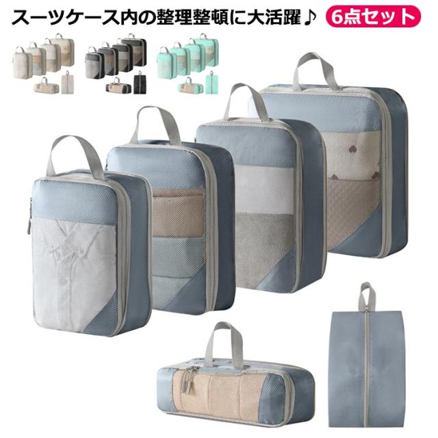 トラベルポーチ 圧縮バッグ ファスナー 6点セット 圧縮袋 旅行 シューズバッグ 靴収納 衣類仕分け トラベルポーチ 衣類圧縮袋 簡単圧縮 軽量 出張 旅行 便利グッズ バッグインバッグ