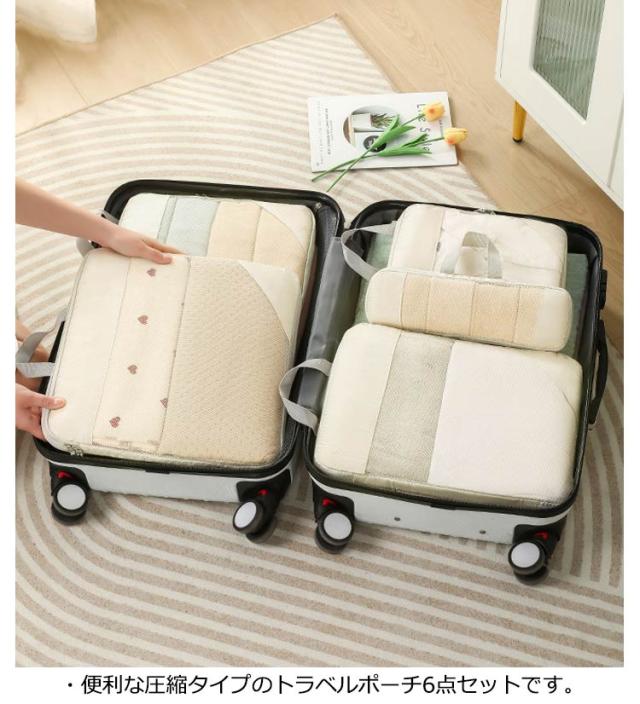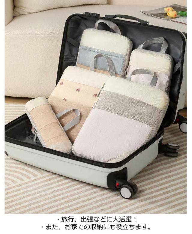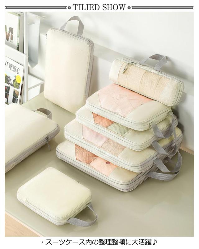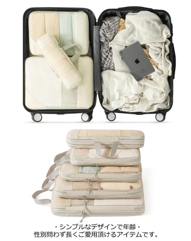 | ・スーツケース内の整理整頓に大活躍♪ ・便利な圧縮タイプのトラベルポーチ6点セットです。 ・専用の道具や掃除機など必要なし!チャックを閉めるだけで圧縮可能なケース。 ・沢山の衣類を簡単に圧縮でき、衣類スペースを約50%節約できる! ・旅行、出張などに大活躍! ・また、お家での収納にも役立ちます。 ・シンプルなデザインで年齢・性別問わず長くご愛用頂けるアイテムです。 | |