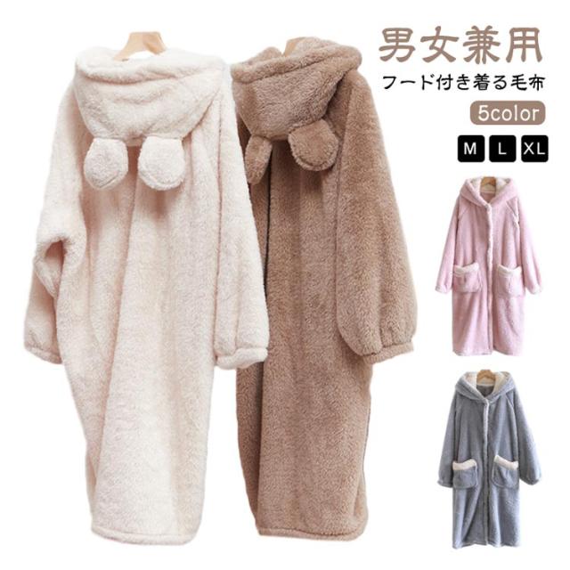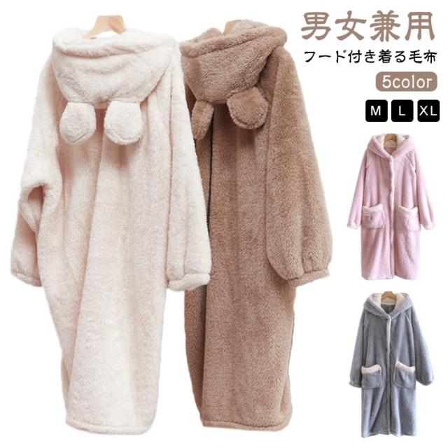 ロング丈 ふわふわ 着る毛布 メンズ 可愛い かわいい おしゃれ パジャマ フード付き あったか 冬 ルームウェア モコモコ 着る毛布 着るブランケット 部屋着 レディース ナイトウェア 暖かい ガウン 秋冬 厚手 ポケット付 プレゼント