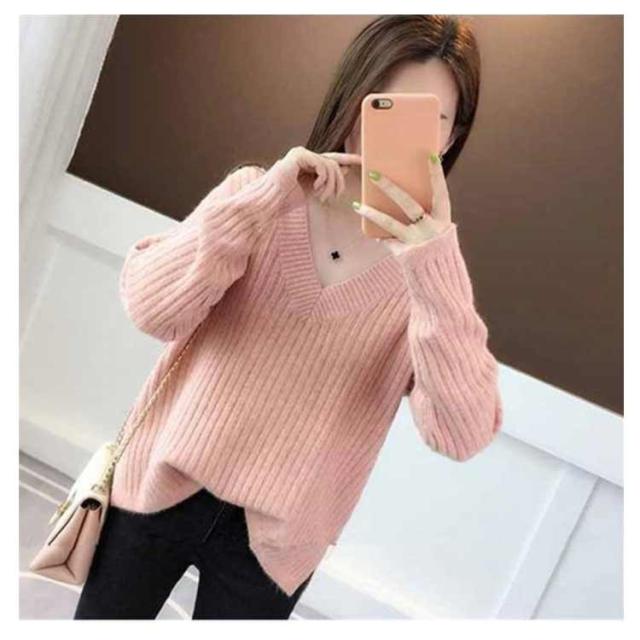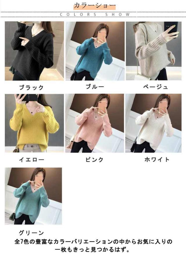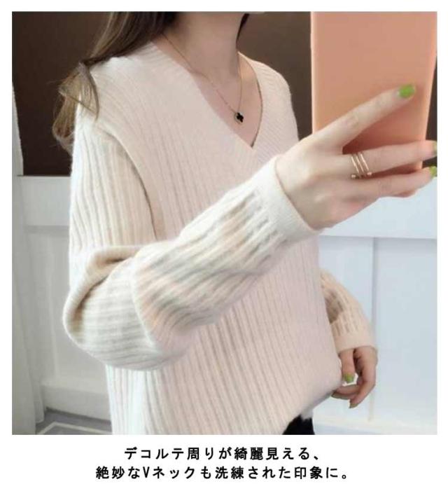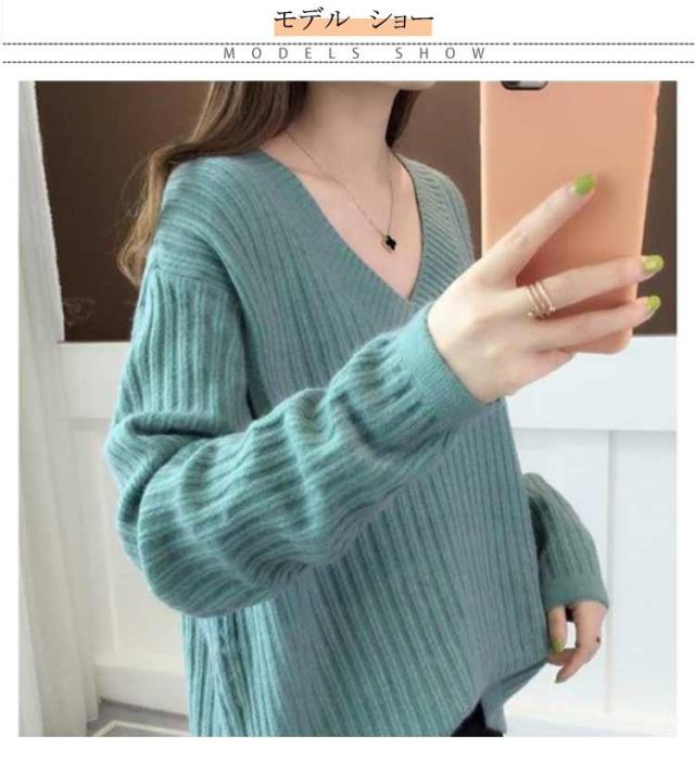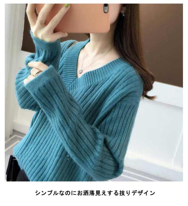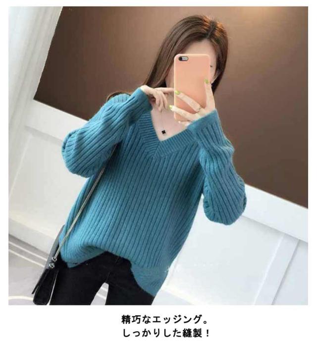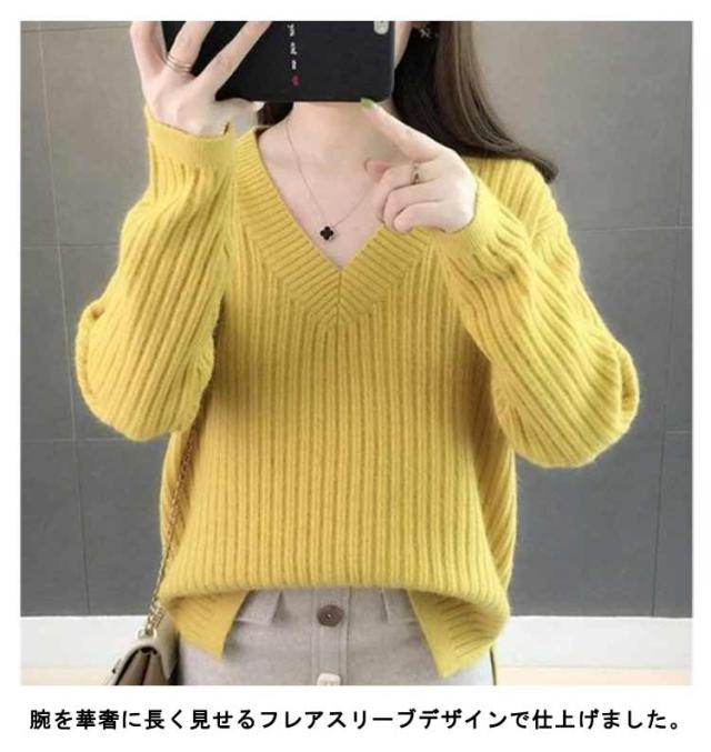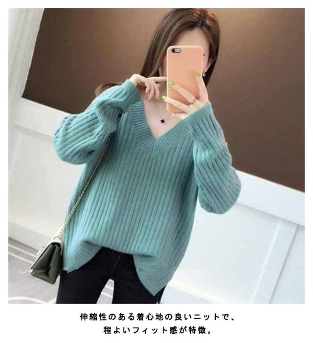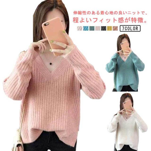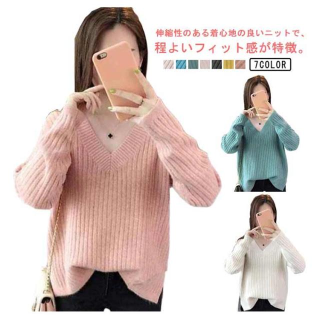 秋冬 レディース 長袖 メリヤス トップス vネック ニットセーター 上品 カジュアル 通勤 OL 厚手 大人 オシャレ 着痩せ 30代 40代 50代 ゆったり 韓国風 カラーニット ギフトニット 暖かい シンプル ニットセーター カラバリ豊富 韓国ファッション