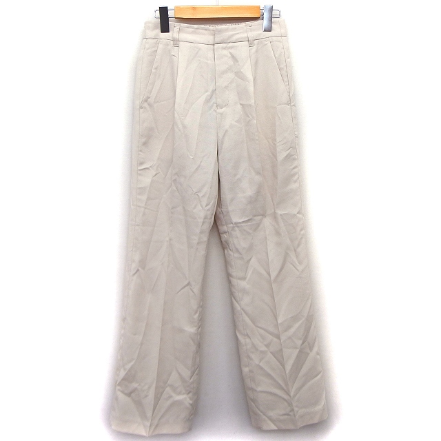 【中古】ローリーズファーム LOWRYS FARM センタープレス パンツ ストレート シンプル タック M ベージュ /HT27