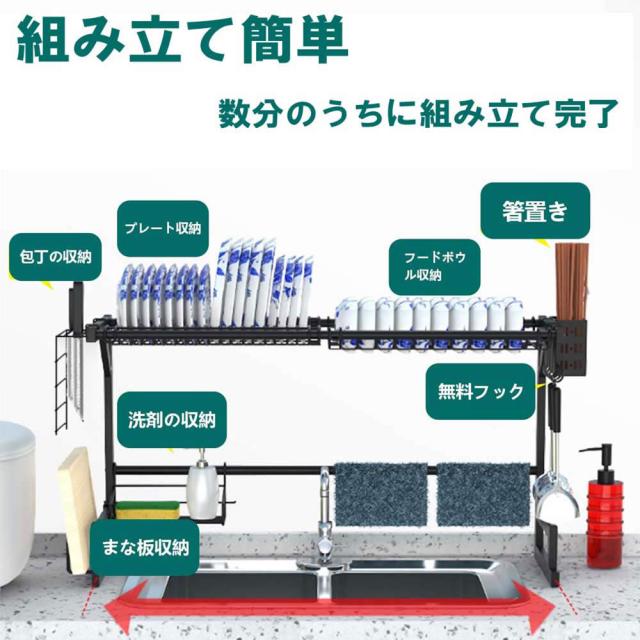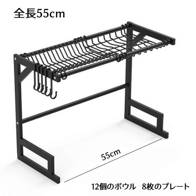水切りラック シンク上 食器 調整可能 幅55cm x 奥行27.5cm x 高48cm 1段 耐荷重40kg 自動排水 組立簡単 キッチン 洗い物 収納 水切りかご スリム 水切り棚 台所 食器置き 乾燥 食器乾燥 水切りかご 食器収納 皿乾燥水切り棚 キッチン 収納