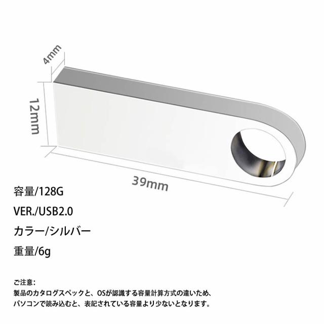 USBフラッシュメモリ 128G アルミボディ シルバー USB2.0メモリ 激安 USBメモリ