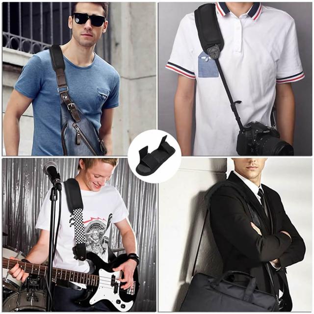PCバッグ、スノボケース、ギターバッグ、カメラケース、通学バッグ、通勤鞄、ビジネスバッグ、ショルダーバッグ(斜め掛けバッグ)、出張鞄など、肩掛けベルトやスリングに装着して使用することができます。