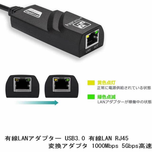 USB3.0 to Lan 有線LANアダプター USB3.0 有線LAN RJ45 変換アダプタ 1000Mbps 5Gbps高速ベーシック インターネットアダプター USB 3.0から10/100/1000ギガビット イーサネット