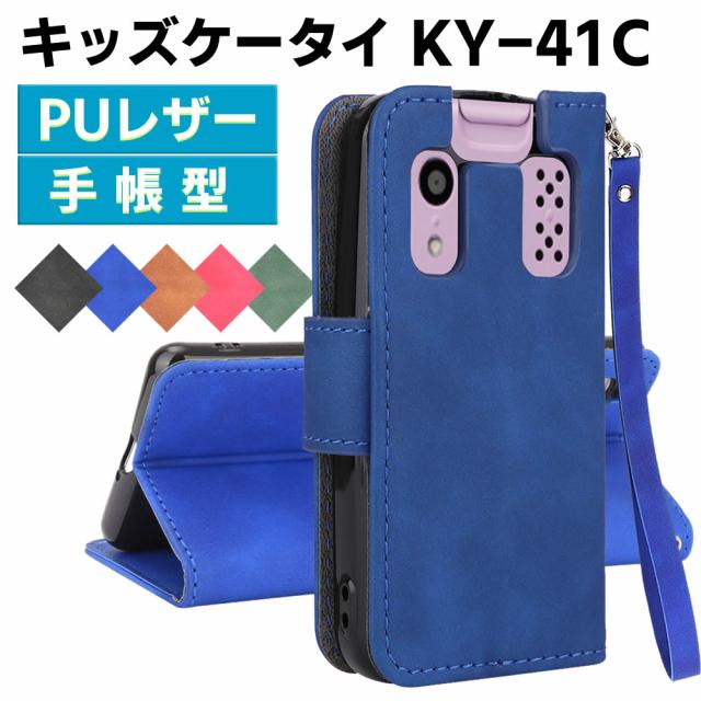 京セラ キッズケータイ KY-41C ケース スマートフォンケース 手帳型ケース ストラップ付 二つ折りケース カバー マグネット 定期入れ ポケット シンプル スマホケース TPUケース スタンド機能 携帯ケース