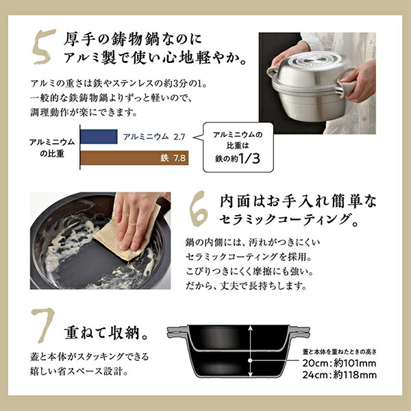 マイスター あわせ釜は、「吉岡鍋」や「オーブン鍋」など、昭和、平成と半世紀以上にわたって受け継いできた万能機能鍋を今のくらしに合わせてリデザインした、懐かしくも新しいマイスターシリーズの仲間です。 |