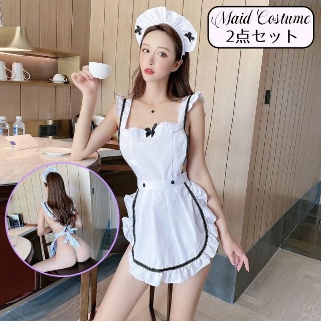コスプレ衣装 メイド服 2点セット レディース エプロン カチューシャ コスチューム セクシーランジェリー ベビードール 制服