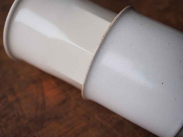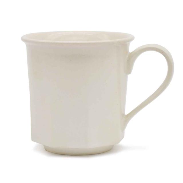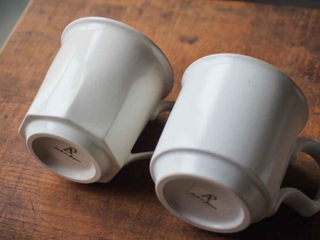 オクタゴナルカップ&ソーサーとマグカップだけの特別な白色です。艶があり温かみのあるやや黄みがかった白の釉薬を使っています。よりフレンチアンティークの白い器の色に近い印象です。