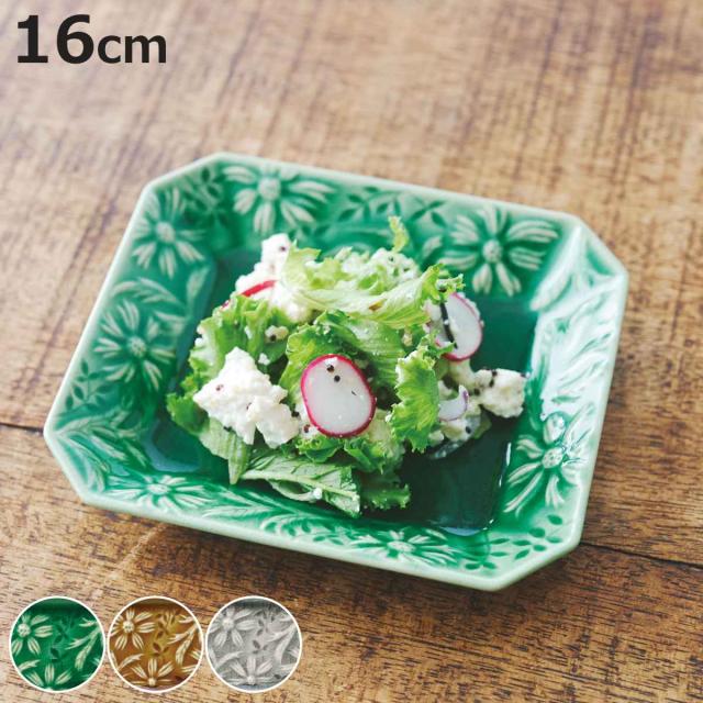 プレート 16cm 角皿 マーガリート 陶器 瀬戸焼 ( 食洗機対応 電子レンジ対応 皿 小皿 取り皿 菓子皿 ケーキ 取皿 おつまみ おやつ サラダ パン おしゃれ 花 フラワー スクエア 四角 )