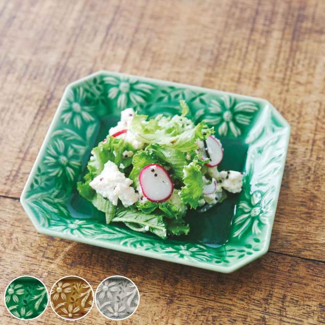 プレート 16cm 角皿 マーガリート 陶器 瀬戸焼 ( 食洗機対応 電子レンジ対応 皿 小皿 取り皿 菓子皿 ケーキ 取皿 おつまみ おやつ サラダ パン おしゃれ 花 フラワー スクエア 四角 )