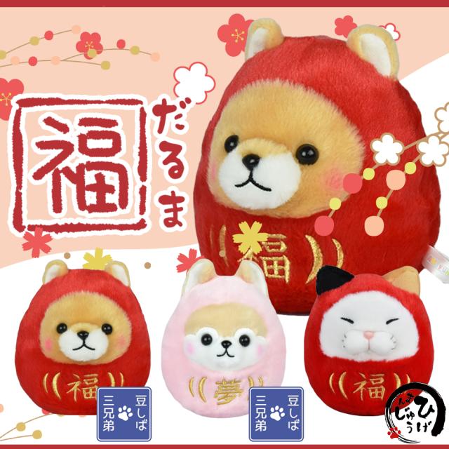 豆しば三兄弟福だるま ひげまんじゅう福だるま だるま ねこ いぬ 猫 犬 ぬいぐるみ 人形
