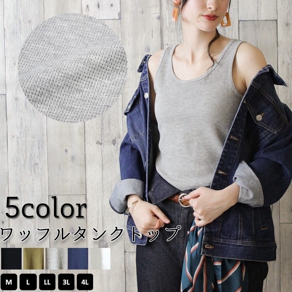 大きいサイズあり!コットンワッフルタンクトップ
