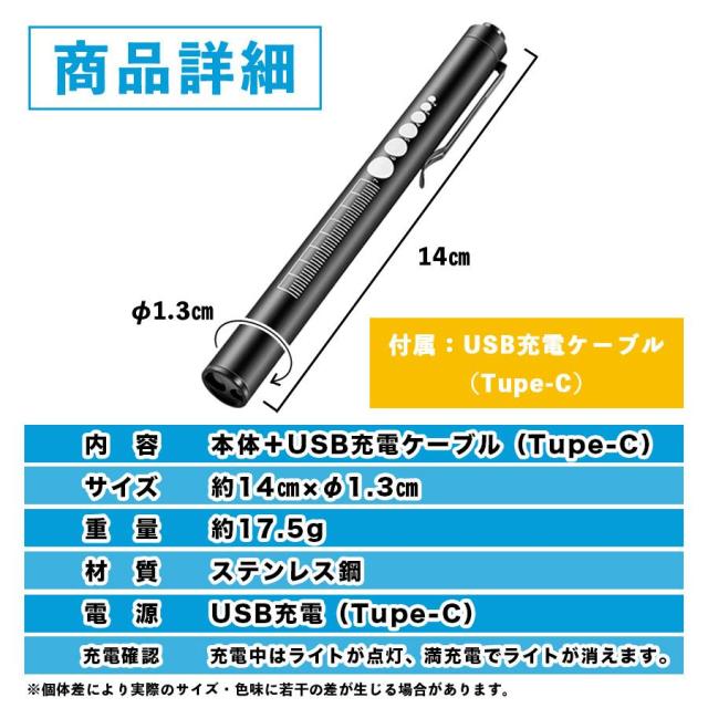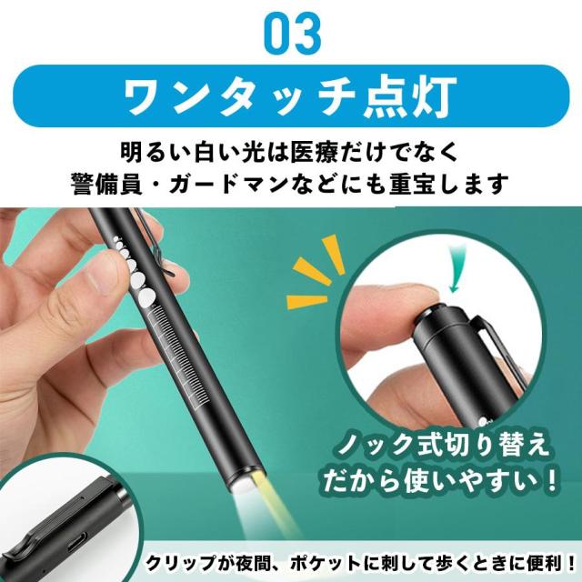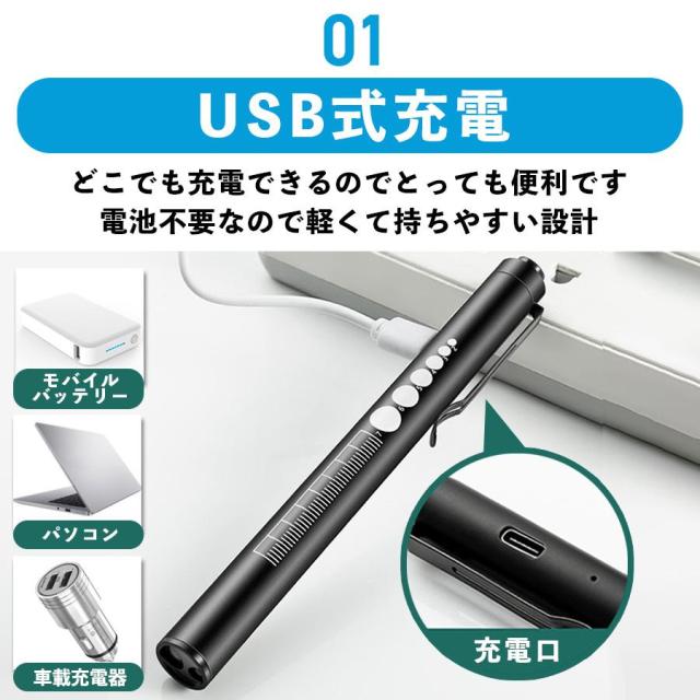 ペンライト led 充電式 USB充電 白色 暖色 瞳孔 懐中電灯 夜勤用 小型 看護師 介護 PSE認証済み