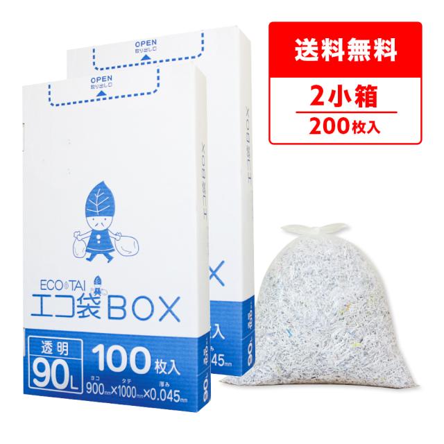 ポリ袋 ゴミ袋 箱タイプ 90リットル 透明 90x100cm 0.045mm厚 100枚x2小箱 HK-980-2kobako ごみ袋 90l BOXタイプ 箱型 収納 クリア サンキョウプラテック 送料無料