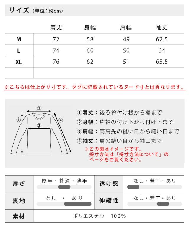 M : 着丈72cm 身幅58cm 肩幅49cm 袖丈62.5cm