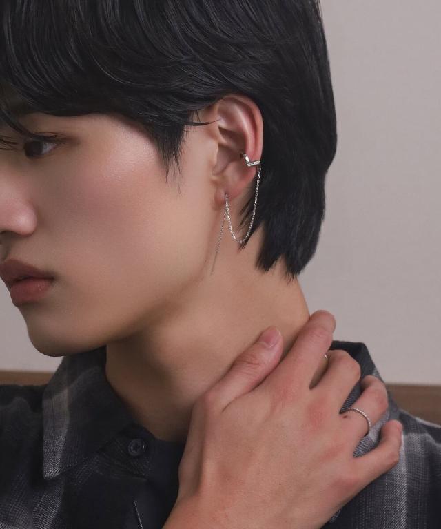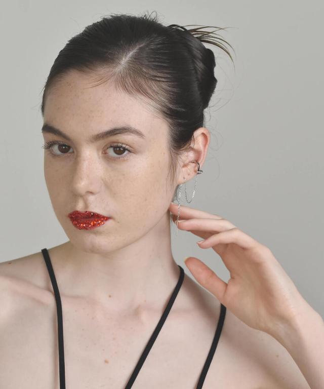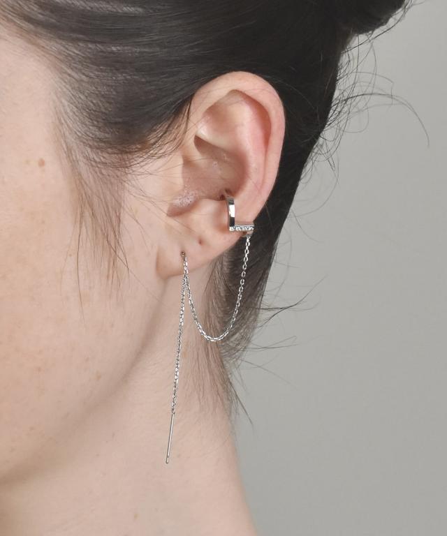 ●ジルコニアが並んだイヤーカフとキラキラと輝くカット小豆チェーンが上品で華やかな雰囲気に。