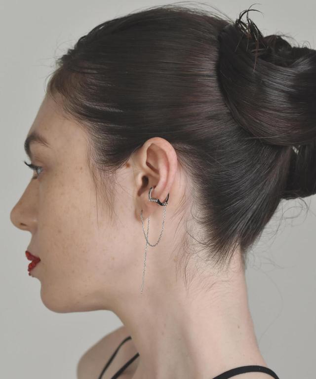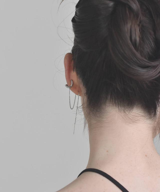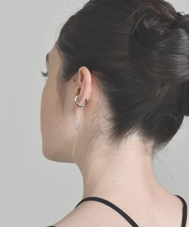 ●イヤーカフからのびるロングチェーンがピアス仕様になっているイヤーカフピアス。