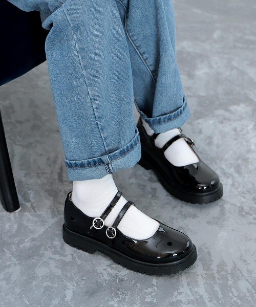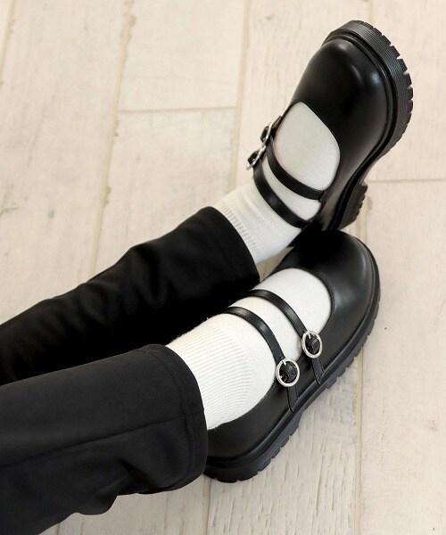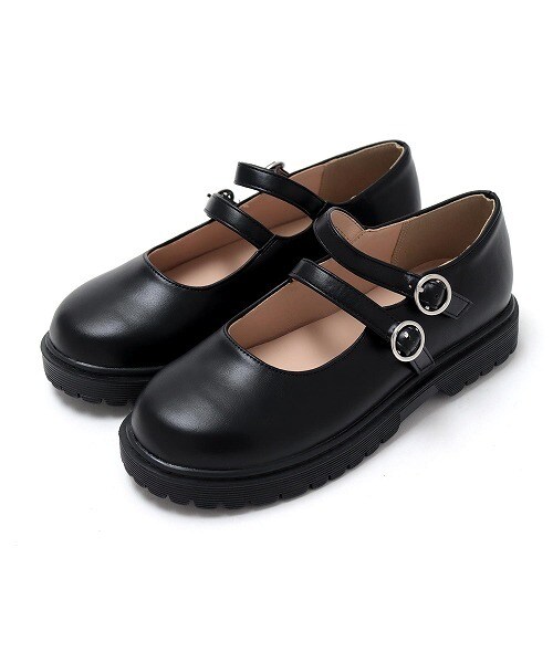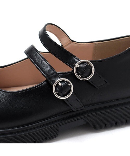 ダブルストラップ 厚底フォーマルパンプス/メリージェーンシューズ