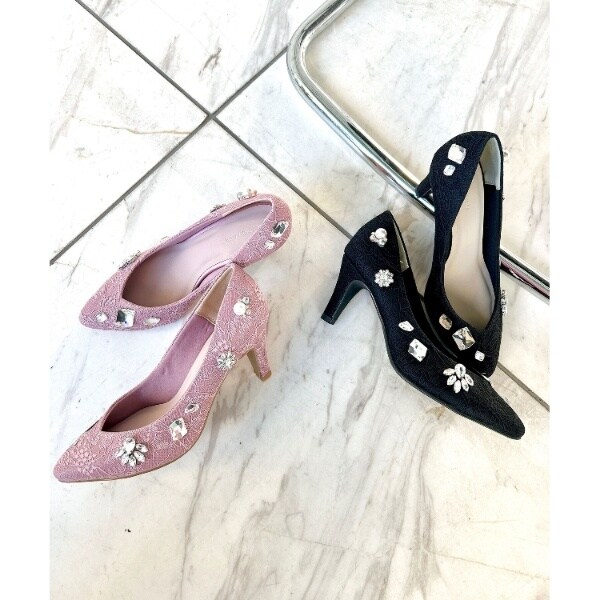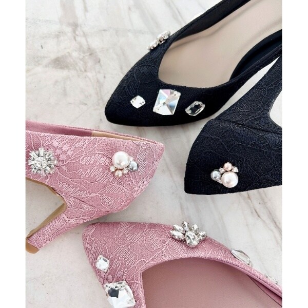 ビジューレースヒールパンプス 結婚式二次会 パーティー 24SS