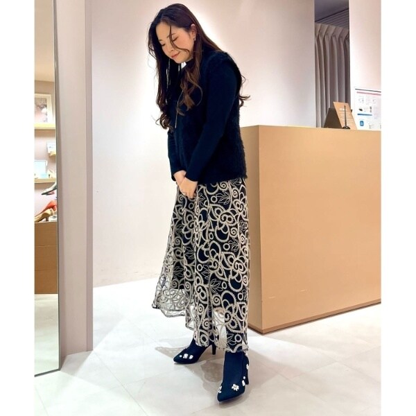 ベースにレース生地を貼り合わせているのでフェミニン度がさらにアップ♪