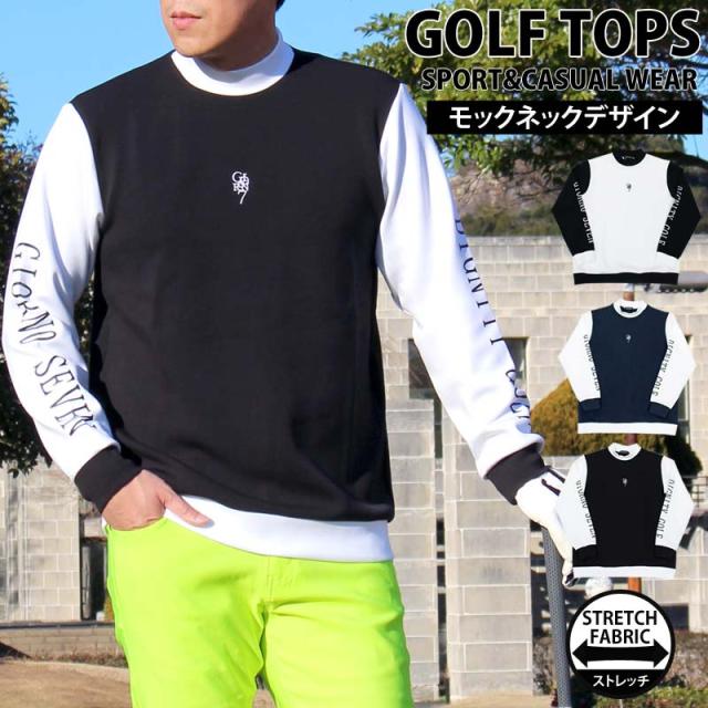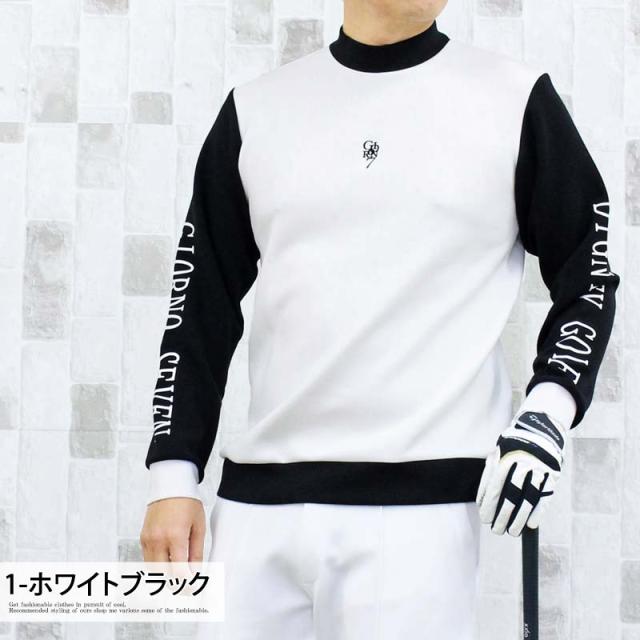 M~XXL 新作 送料無料 ゴルフウェア メンズ モックネックシャツ 大きいサイズ GIORNO SEVEN ジョルノセブン ハイネック トップス ポロシャツ 配色切替 ストレッチ 長袖 おしゃれ 春夏 秋冬 刺繍 無地 袖ロゴ ゆうパケ